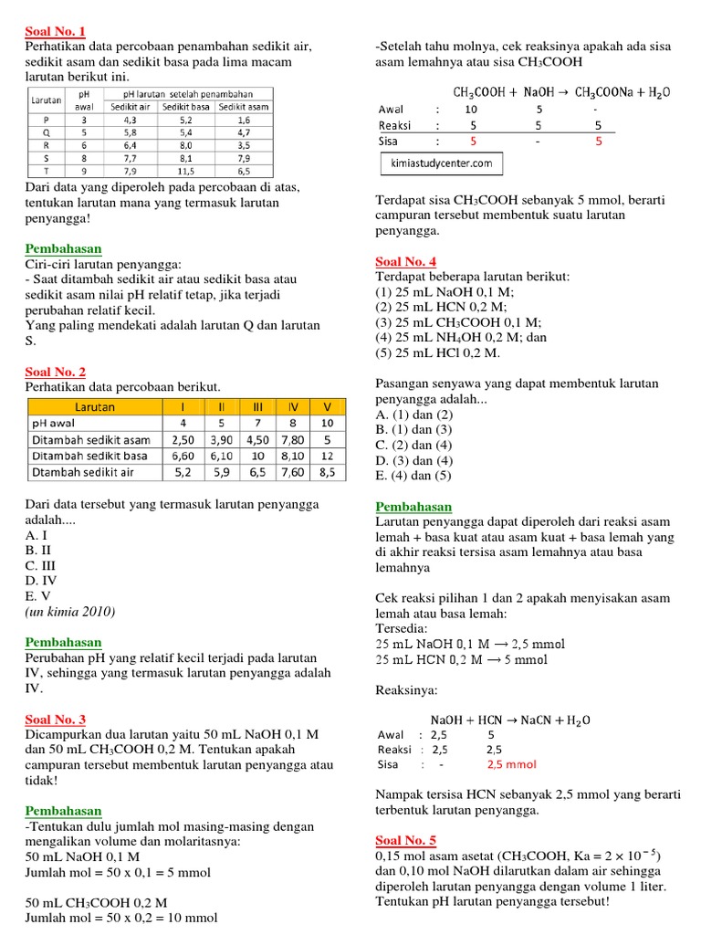 60+ Soal Larutan Penyangga Pilihan Ganda dan Jawaban ...